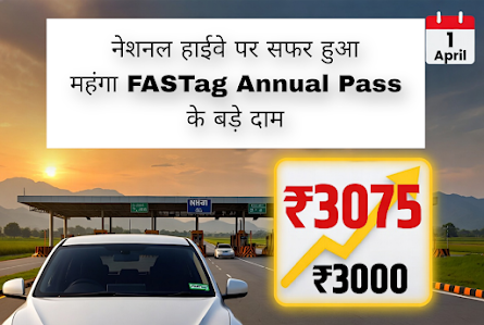 नई दिल्ली: नेशनल हाईवे पर यात्रा करने वालों के लिए एक बड़ी खबर है। नेशनल हाईवे अथॉरिटी ऑफ इंडिया (NHAI) ने FASTag आधारित सालाना टोल पास की कीमत में बढ़ोतरी की घोषणा कर दी है। 1 अप्रैल 2026 से प्राइवेट वाहनों (कार, जीप, वैन) के लिए यह पास अब 3,000 रुपये की जगह 3,075 रुपये में उपलब्ध होगा।
